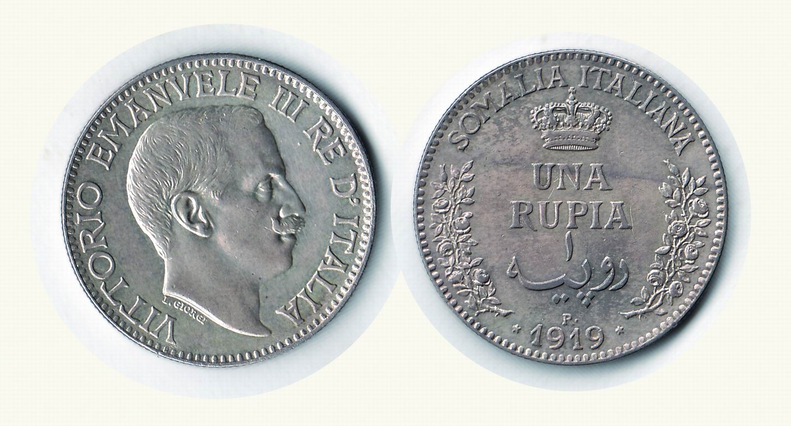 SAVOIA - Vittorio Emanuele III - Rupia 1919 - Patinata. SPL