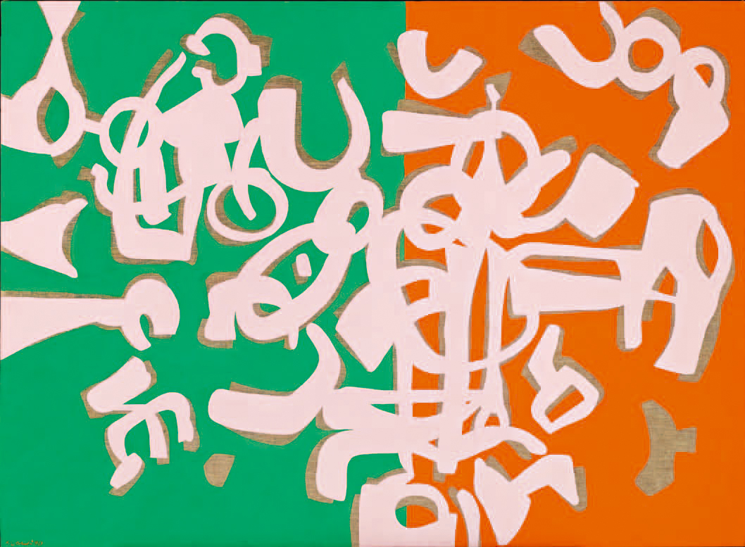 CARLA ACCARDI (N. 1924) Apparenti tinte firmato e datato Accardi ‘90 (in basso a sinistra); firma titolo e data Accardi “Apparenti tinte” 1990 (sul retro) vinilico su tela cm 160x220 Eseguito nel 1990 Opera registrata presso lo Studio Accardi, Roma, n. 57/12, come da autentica su fotografia P R O V E N I E N Z A : Galleria Piano Nobile, Perugia ivi acquisito dall’attuale proprietario nel 1993 E S P O S I Z I O N I : Macerata, Associazione culturale Per mari e monti, Carla Accardi, 5 dicembre 1992, (illustrato sull’invito)