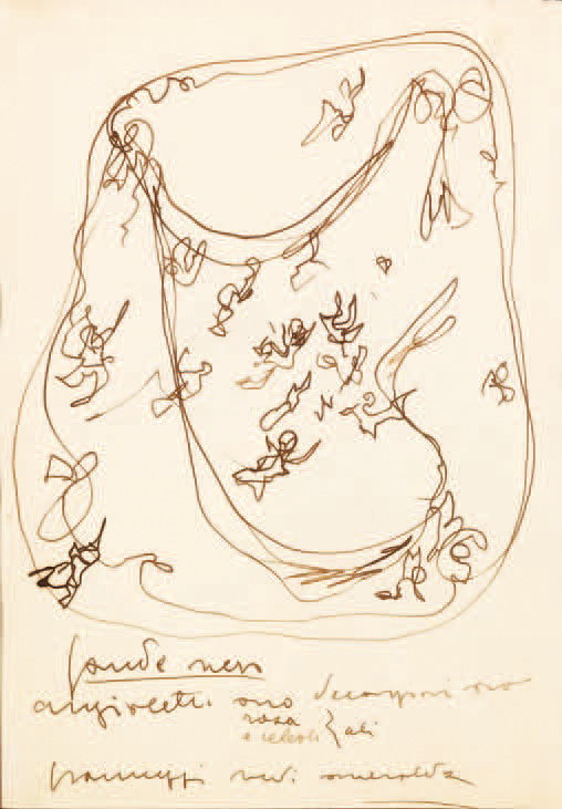 LUCIO FONTANA (1899-1968) Studio per soffitto o pannello inchiostro su carta cm 28x22,2 Eseguito nel 1954 Opera registrata presso l’Archivio Lucio Fontana, Milano, n. 2336/2 P R O V E N I E N Z A : Galleria Marlborough, Roma Galleria Milano, Milano Galleria La Scaletta, San Polo d’Enza ivi acquisito dall’attuale proprietario nel 2005