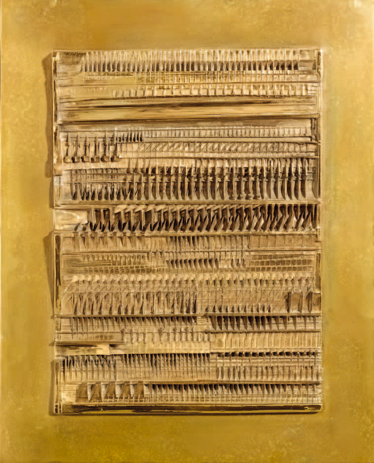 ARNALDO POMODORO (N. 1926) Studio firmato, datato e numerato Arnaldo Pomodoro ‘62 02 p.a. (in basso a destra) bronzo su base di legno cm 52,2x42,2x6 Realizzato nel 1962 in 2 esemplari + 1 prova d’artista Opera registrata presso l’Archivio Arnaldo Pomodoro, Milano, n. 206 P R O V E N I E N Z A : Collezione privata, Monza