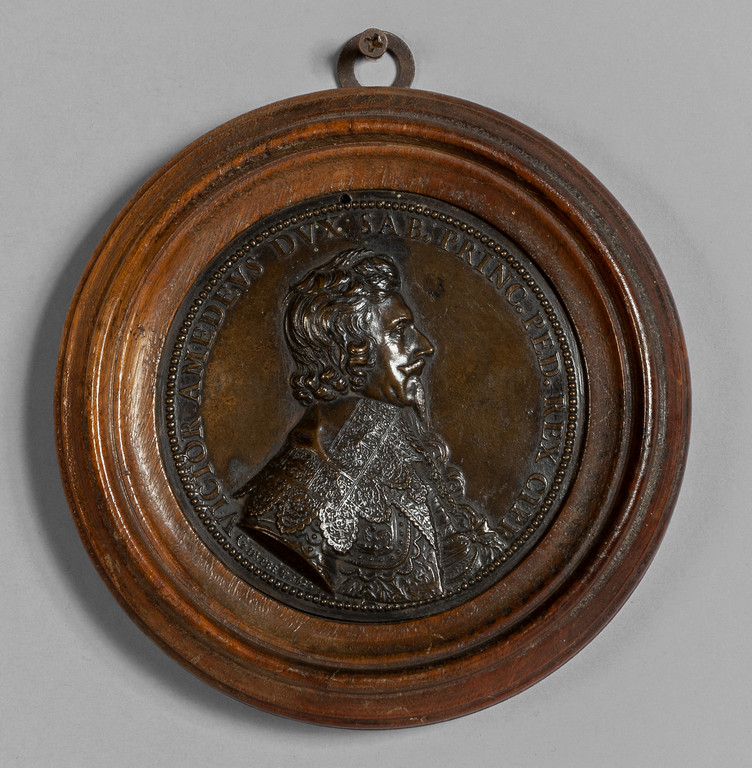 Profilo di Vittorio Amedeo Principe di Piemonte e Re di Cipro placca in bronzo di forma rotonda f.ta Duprè e d.ta 1636