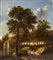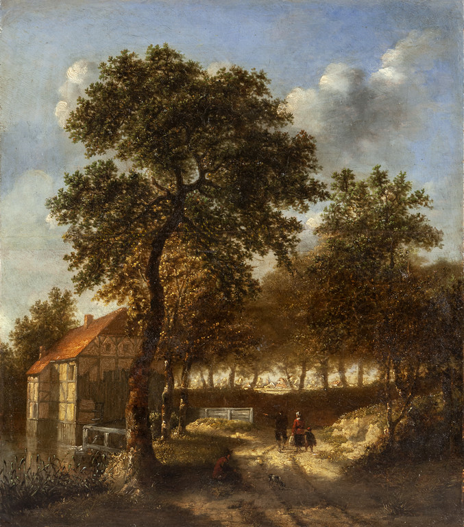 Scuola olandese sec.XVII 'Paesaggio animato' olio