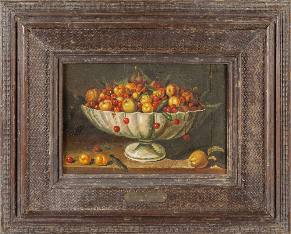 Miguel Canals (1925-1995) nello stile del Maestro della fruttiera lombarda 'Natura morta con alzatina di frutta' olio su tavola