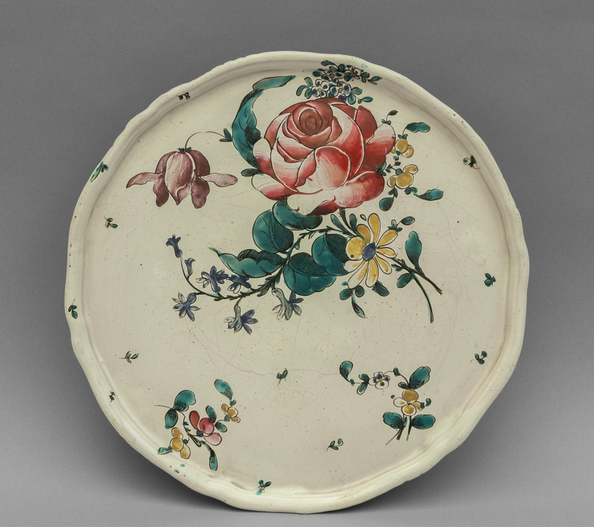 Alzata in ceramica decorata alla rosa su fondo bianco f.ta Jacques Boselly Savona sec.XVIII