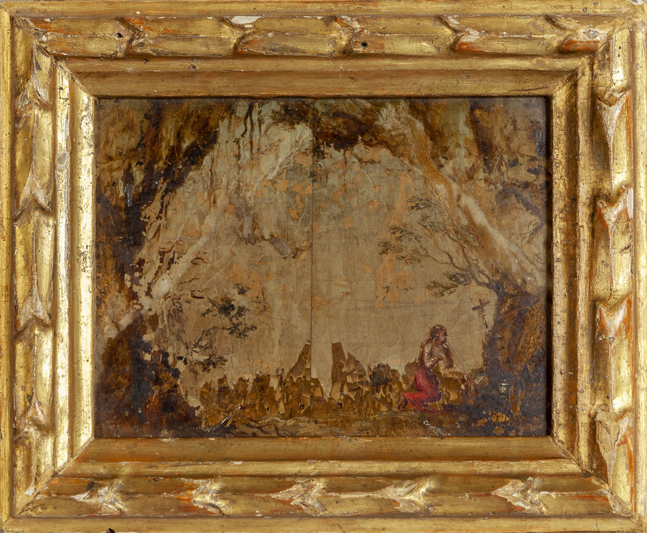 'La Maddalena in preghiera' olio su pietra paesina antica cornice in legno sec. XVIII