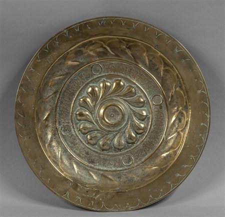 Elemosiniere in rame dorato all'interno scritte gotiche sec.XVII (nel retro cartellino Bartolozzi Antichità)