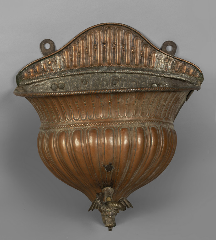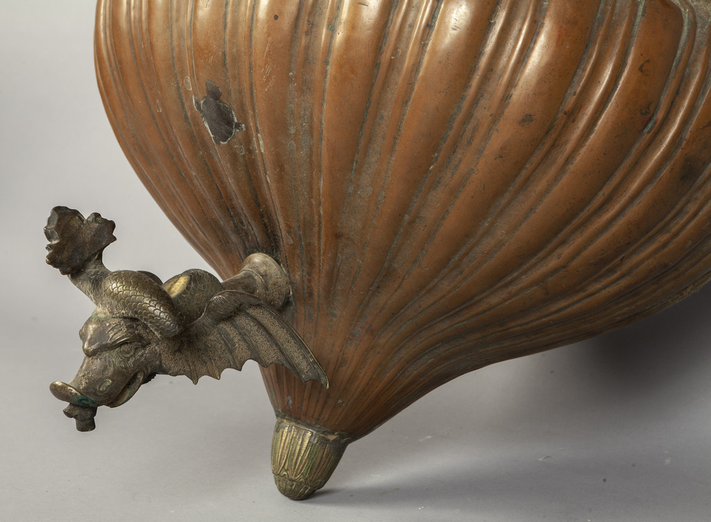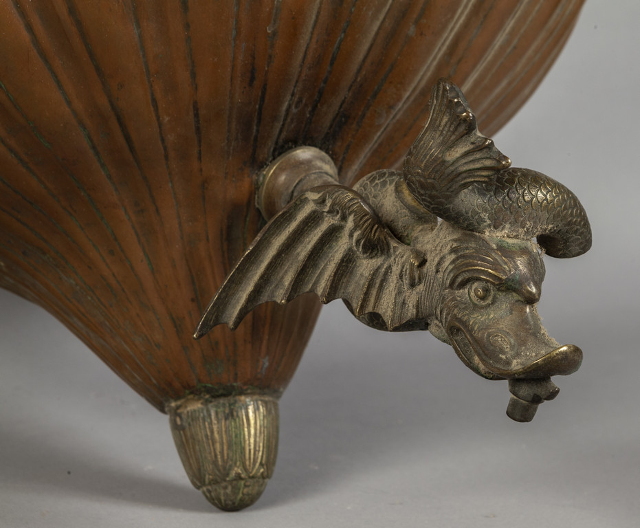 Grande acquamanile in rame sbalzato rubinetto a forma di drago alato Genova sec.XVII