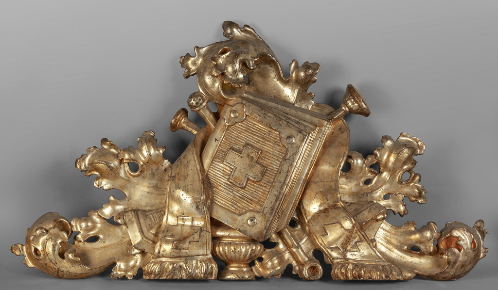 Grande fregio in legno finemente intagliato e dorato Italia Centrale sec.XVIII
