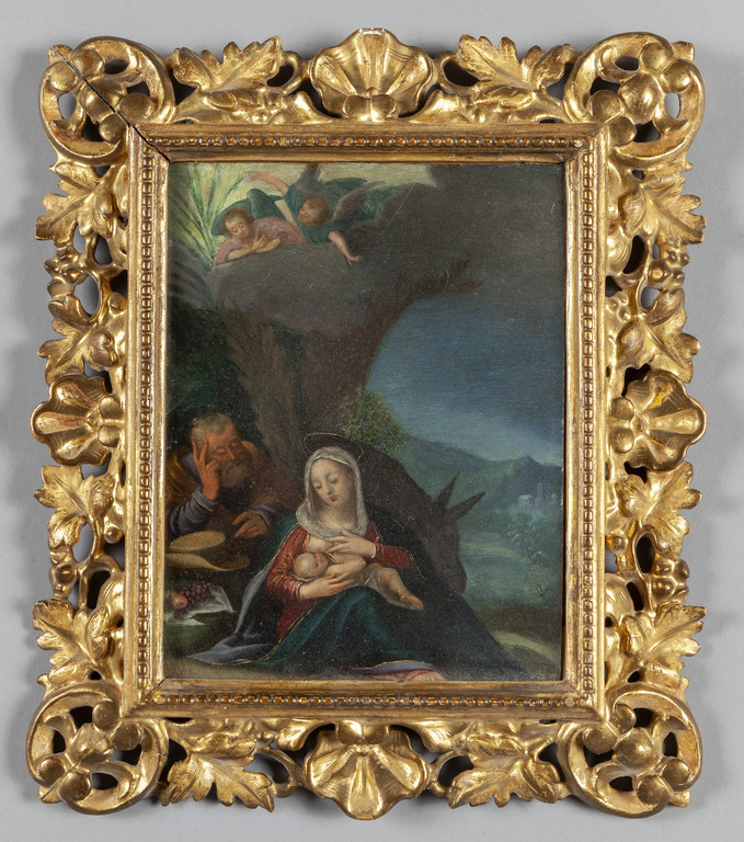 Scuola francese sec.XVII 'La fuga in Egitto' olio su rame