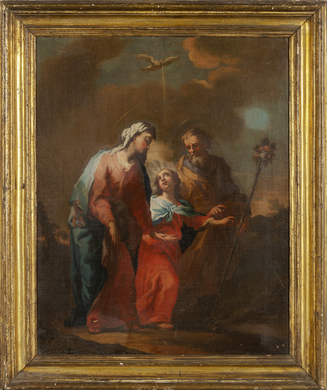 Scuola veneta sec.XVII (Camillo Sagrestani) 'Sacra Famiglia' olio cornice coeva in legno dorato