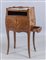 Comodino Luigi XV a due sportelli lastronato in palissandro ed intarsiato a motivi di festoni pianetto scrittoio estraibile un cassetto laterale piano in marmo fior di pesco Genova II metà sec.XVIII