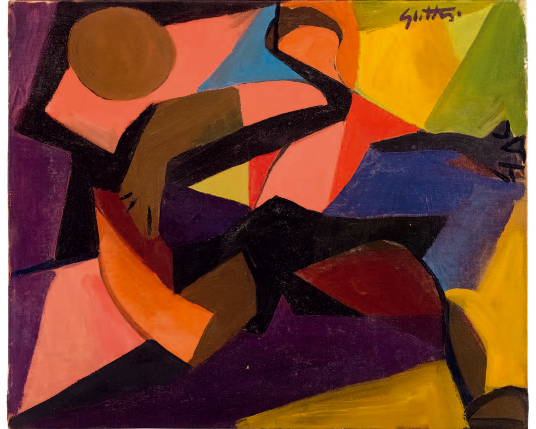 RENATO GUTTUSO (1912-1987) Giocatore di pallone firmato Guttuso (in alto a destra) olio su tela cm 38x46 Eseguito nel 1947 P R O V E N I E N Z A : Acquisito direttamente dall’artista dalla famiglia dell’attuale proprietario B I B L I O G R A F I A : E. Crispolti, Catalogo ragionato generale dei dipinti di Renato Guttuso, Milano 1984, vol. I, p. 172, n. 47/71 (illustrato)