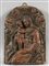 Placca devozionale in stucco policromo di forma centinata raffigurante la Madonna in trono con il Bambino circondata da teste di Angeli e sormontata dallo Spirito Santo Bologna sec.XIX