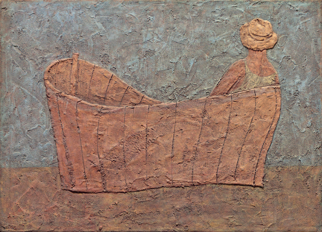 DOMENICO GNOLI (1933-1970) Uomo su una barca olio e sabbia su tela cm 91,5x127 Eseguito nel 1960 P R O V E N I E N Z A : L’artista Norman Parkinson, Londra ivi acquisito dall’attuale proprietario B I B L I O G R A F I A : L. Carluccio, Domenico Gnoli, Losanna 1974, p. 33 (illustrato)