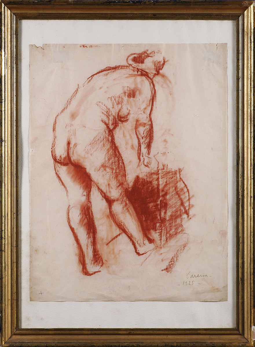 Lotto 84 | CARENA FELICE (1879 - 1966) Figura. 1925. Sanguigna. Cm 50,00 x 70,00. Firma...