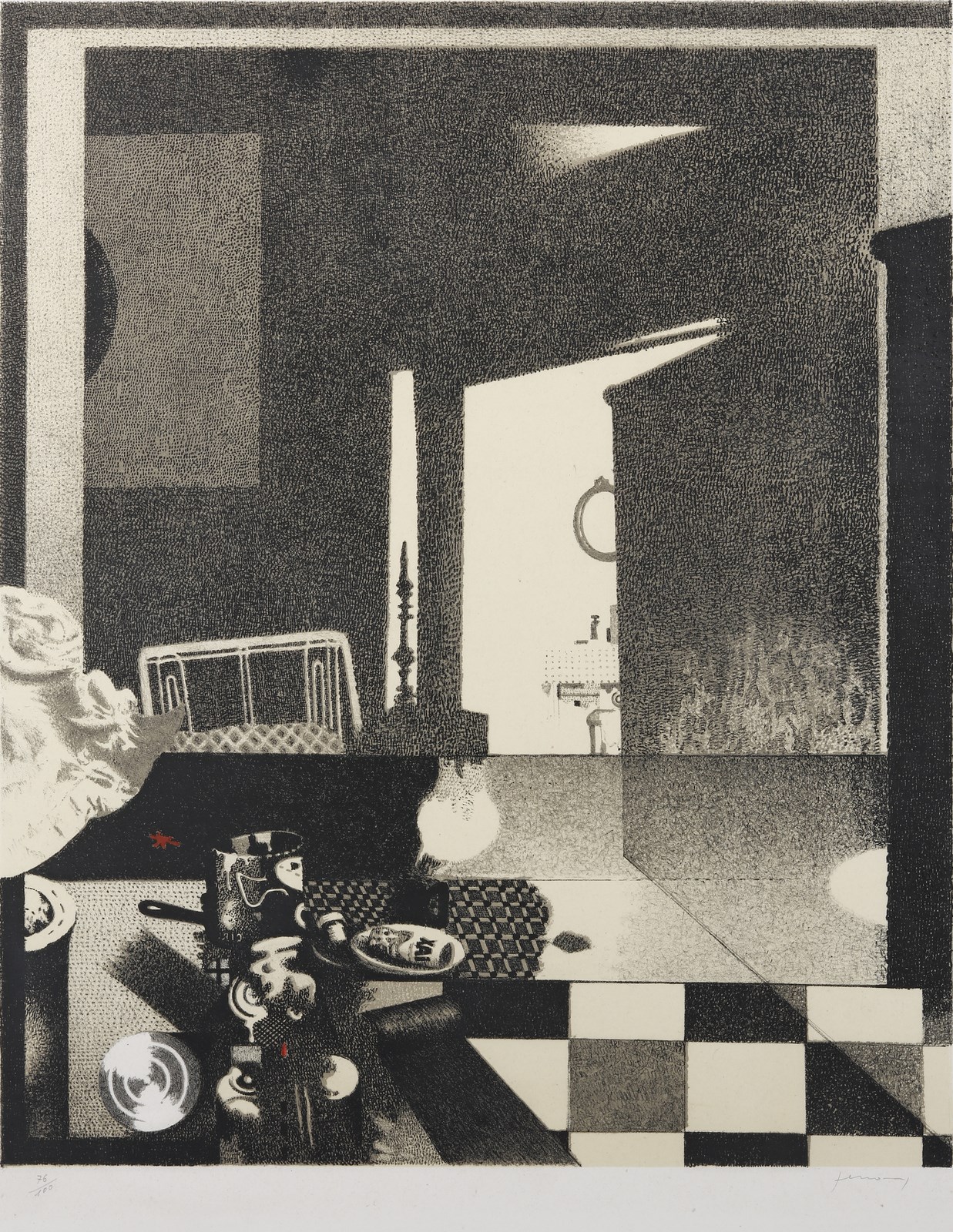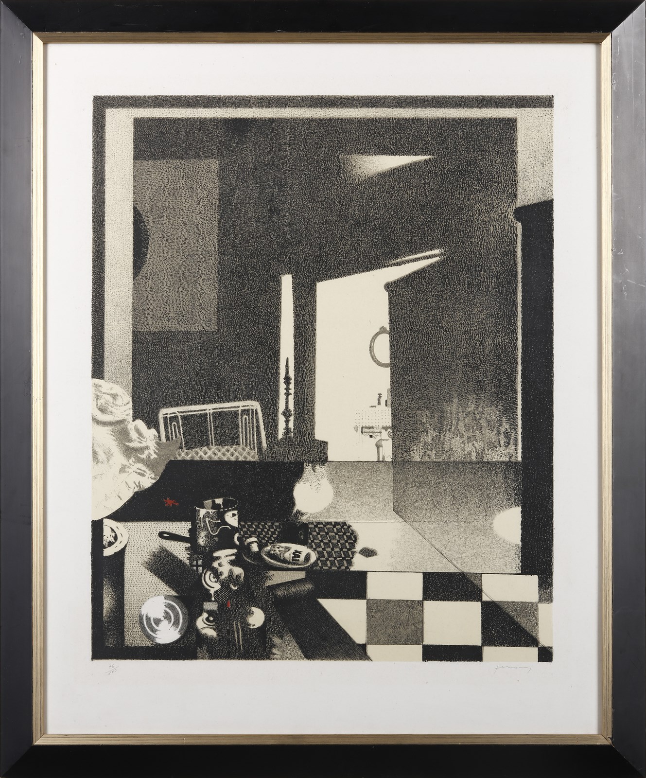 FERRONI GIANFRANCO (1927 - 2001) Senza titolo. Litografia. Cm 50,00 x 60,00. 76/100. Tiratura e firma in basso a matita. Dimensione lastra: 50x42 cm. Cornice presente