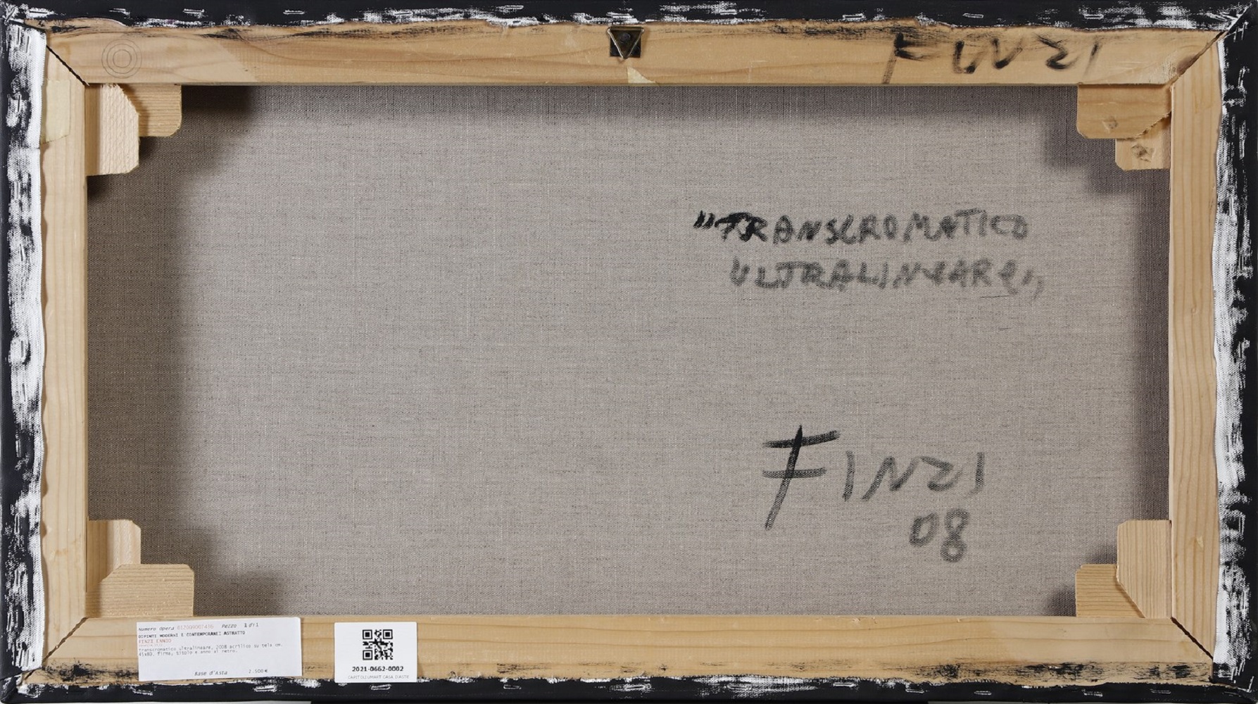 FINZI ENNIO (n. 1931) Transcromatico ultralineare. 2008. Acrilico su tela. Cm 81,00 x 45,00. Firma, titolo e anno al retro. Opera archiviata presso l'Archivio Ennio Finzi, Mestre, come da documentazione fotografica allegata all'opera riportante il relativo numero d'inventario e la firma dell'artista.