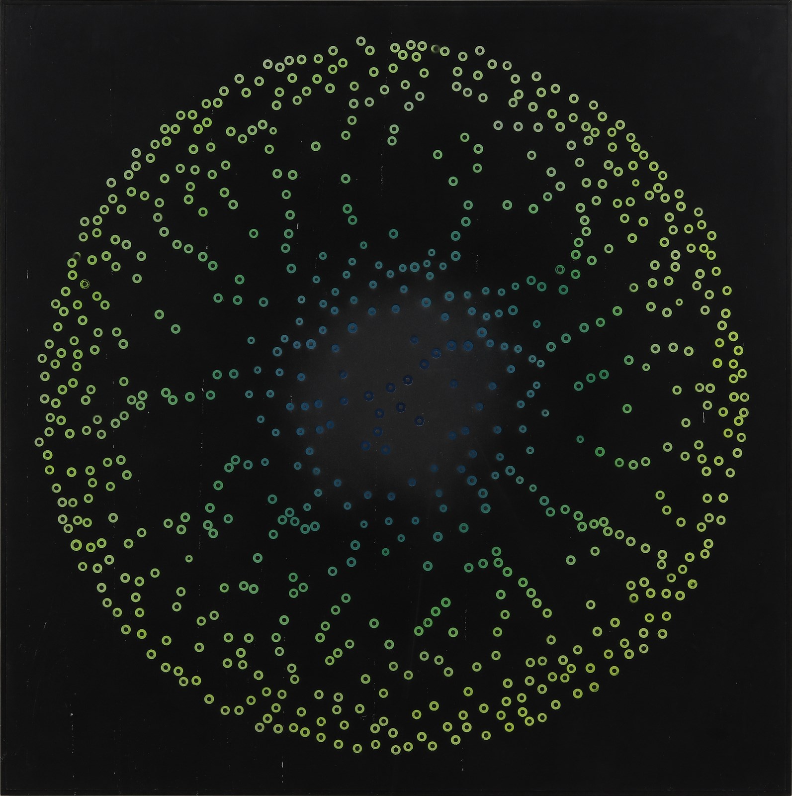 COSTALONGA FRANCO (n. 1933) Espansione. 2003. Tecnica mista su tavola. Cm 80,00 x 80,00. Al retro firma , titolo e anno. Cornice presente