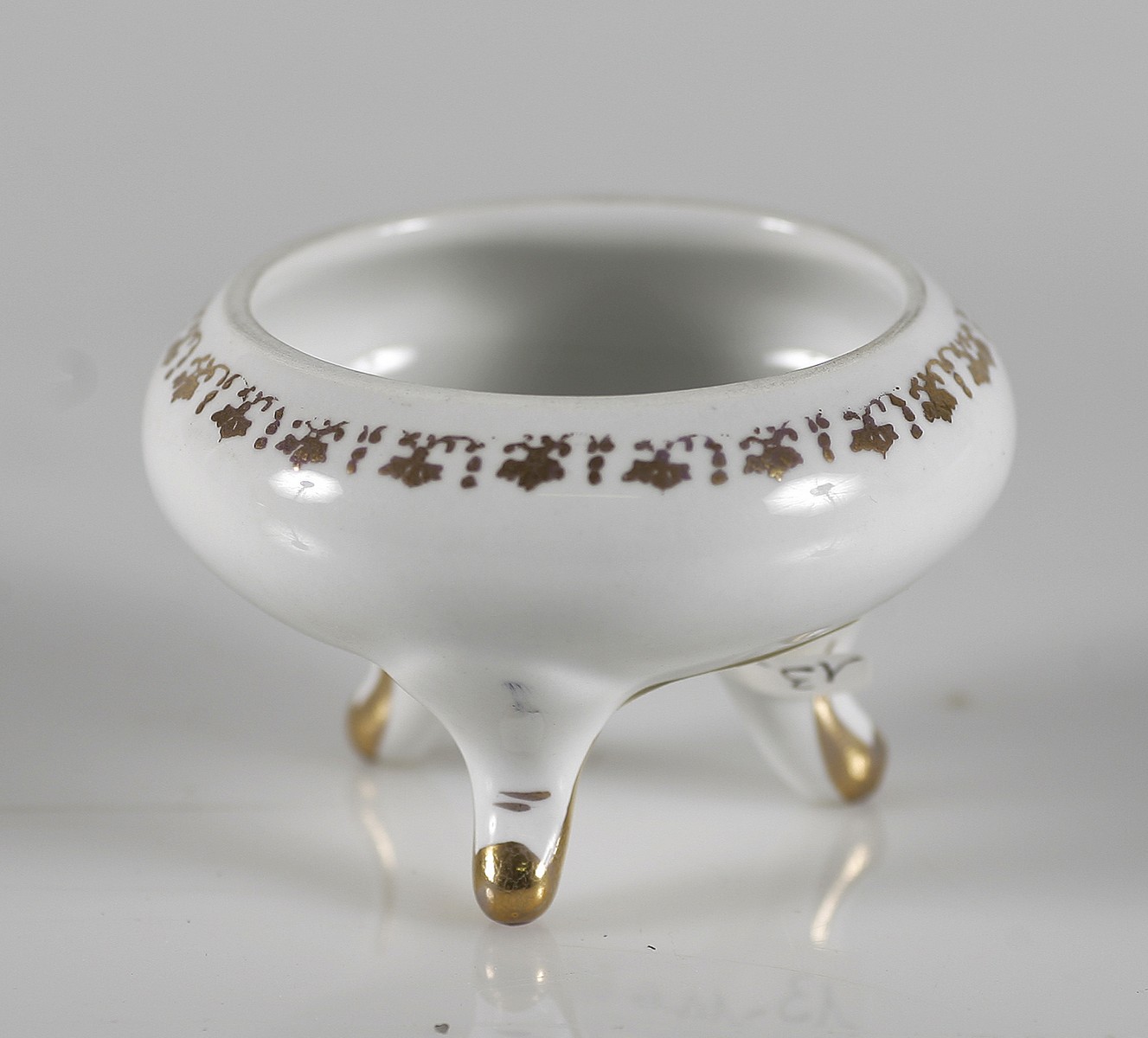 MANIFATTURA DEL XX SECOLO Ciotolina con ricami dorati. Ceramica. Cm 4,30. Diametro 6,5 cm.