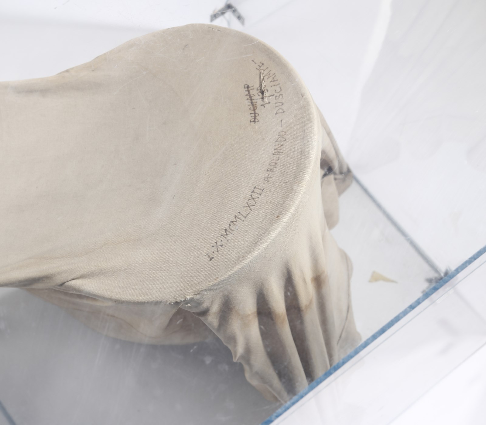 CHIA SANDRO (n. 1946) A Rolando. 1972. Scultura. Cm 50,00 x 50,00. 1/30. Tiratura, titolo e anno. Entro teca di plexiglass.