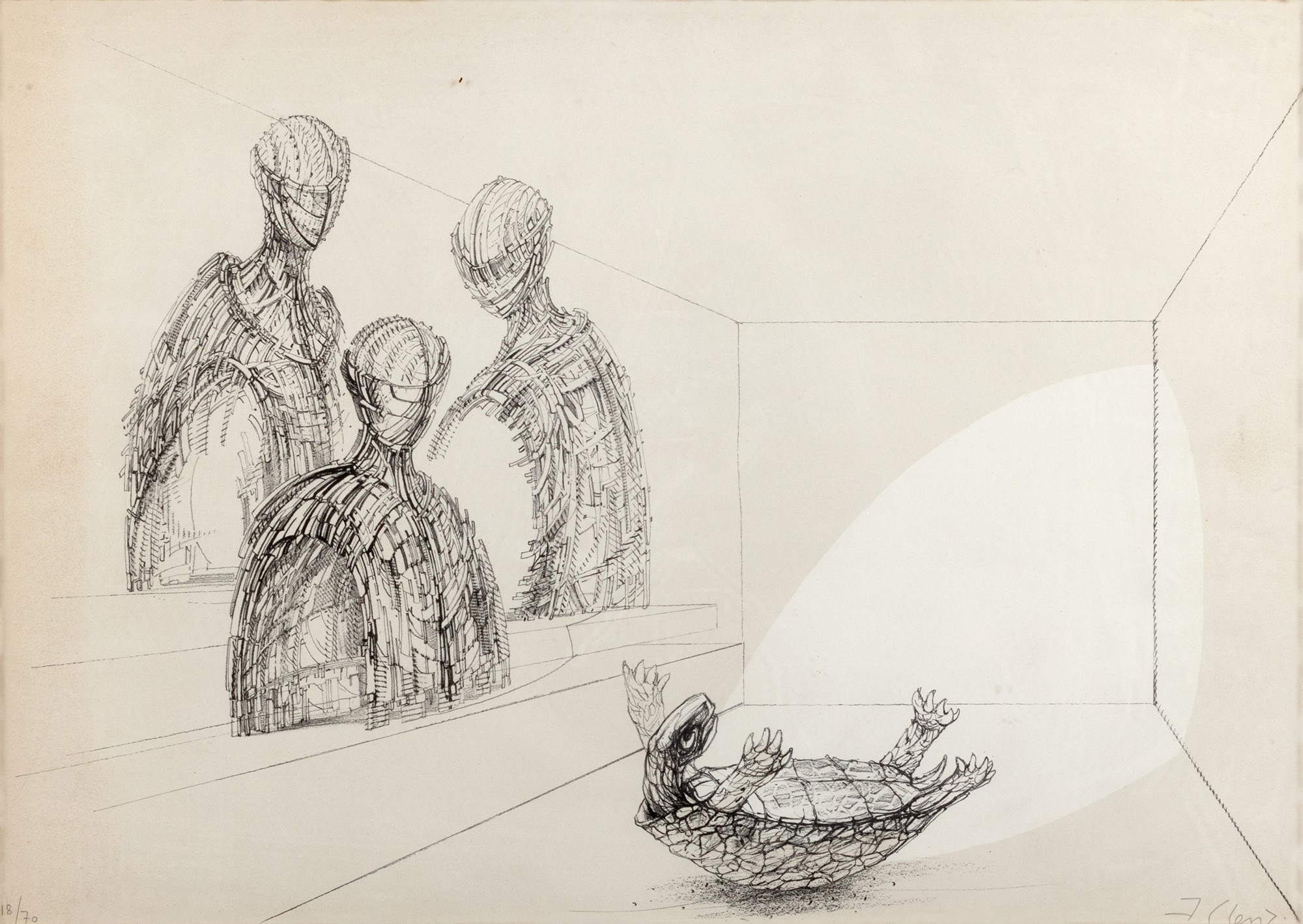 Clerici, Fabrizio (Milano 1913-Roma 1993) - Tre figure e una tartaruga capovolta
