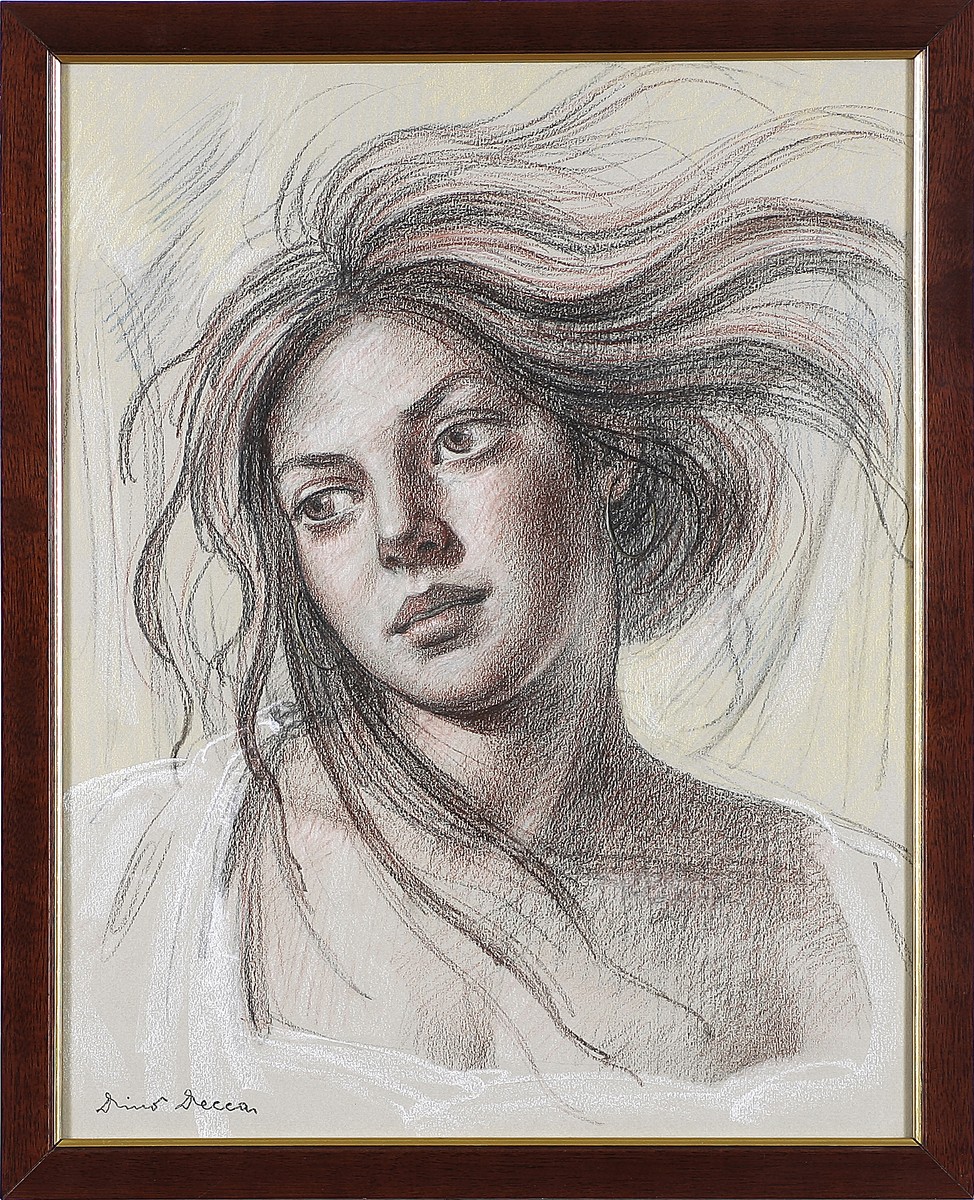 DECCA DINO (1935 - 2005) Ritratto di donna. pastello a olio su carta. Cm 40,00 x 50,00. Firmato in basso a sinistra. Cornice presente