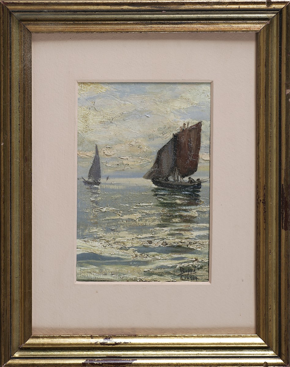 Lotto 64 | ANONIMO Barche a vela. Olio su tela applicato su cartone. Cm 11,50 x 17,00. A...