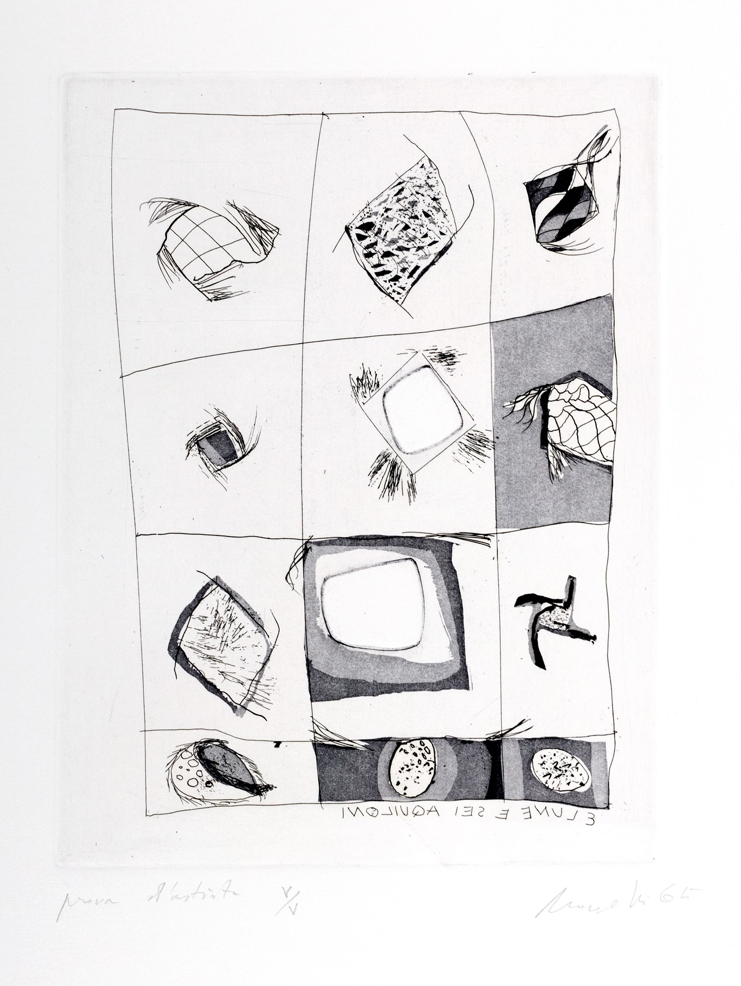 Novelli, Gastone (Vienna 1925-Milano 1968) - 3 lune e 6 aquiloni, 1965