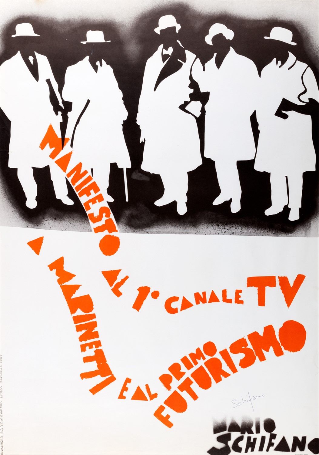 Schifano, Mario (Homs 1934-Roma 1998) - Manifesto al 1° canale TV a Marinetti e al primo futurismo, 1967