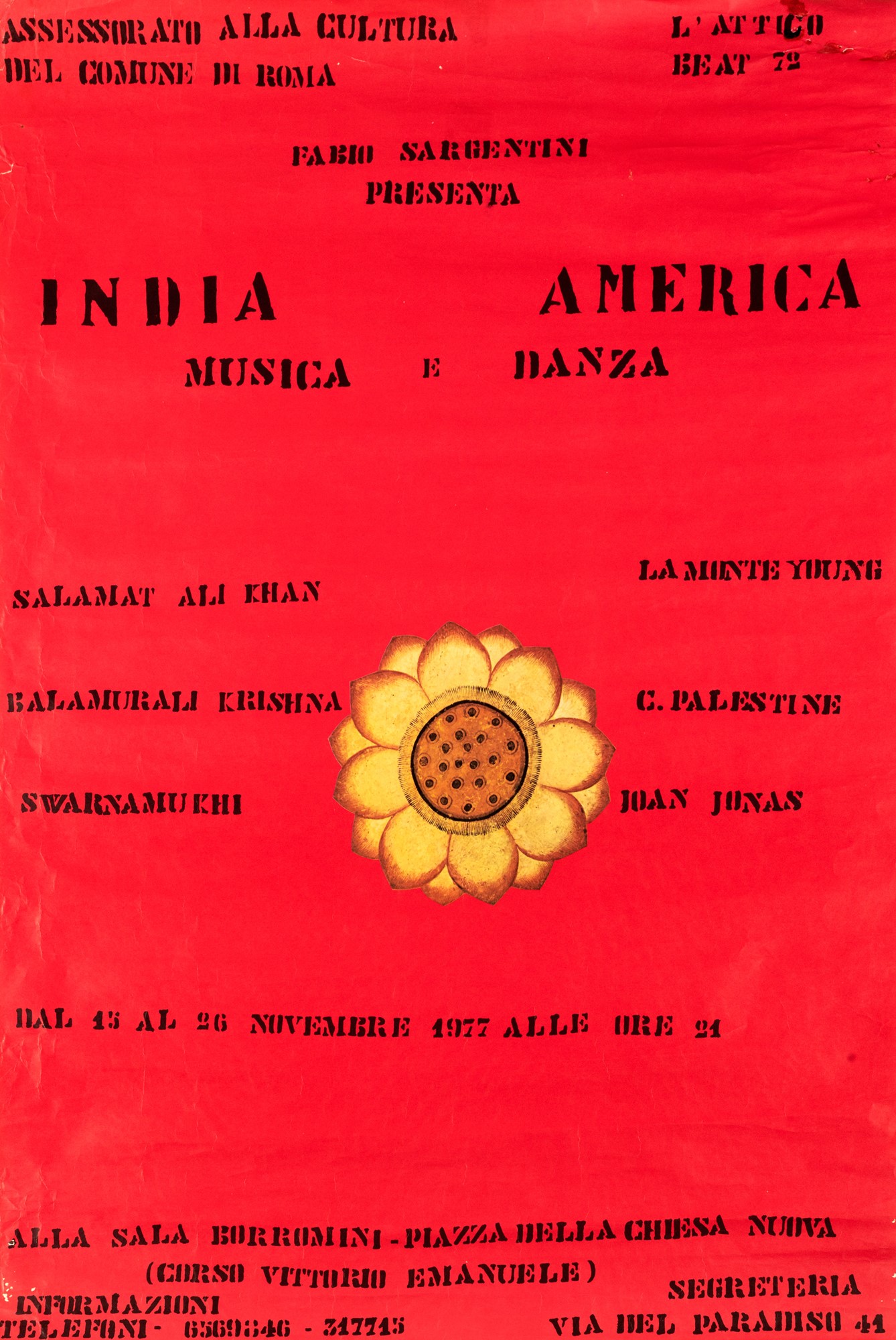Manifesto per l'evento a cura di Fabio Sargentini, galleria l'Attico, Roma