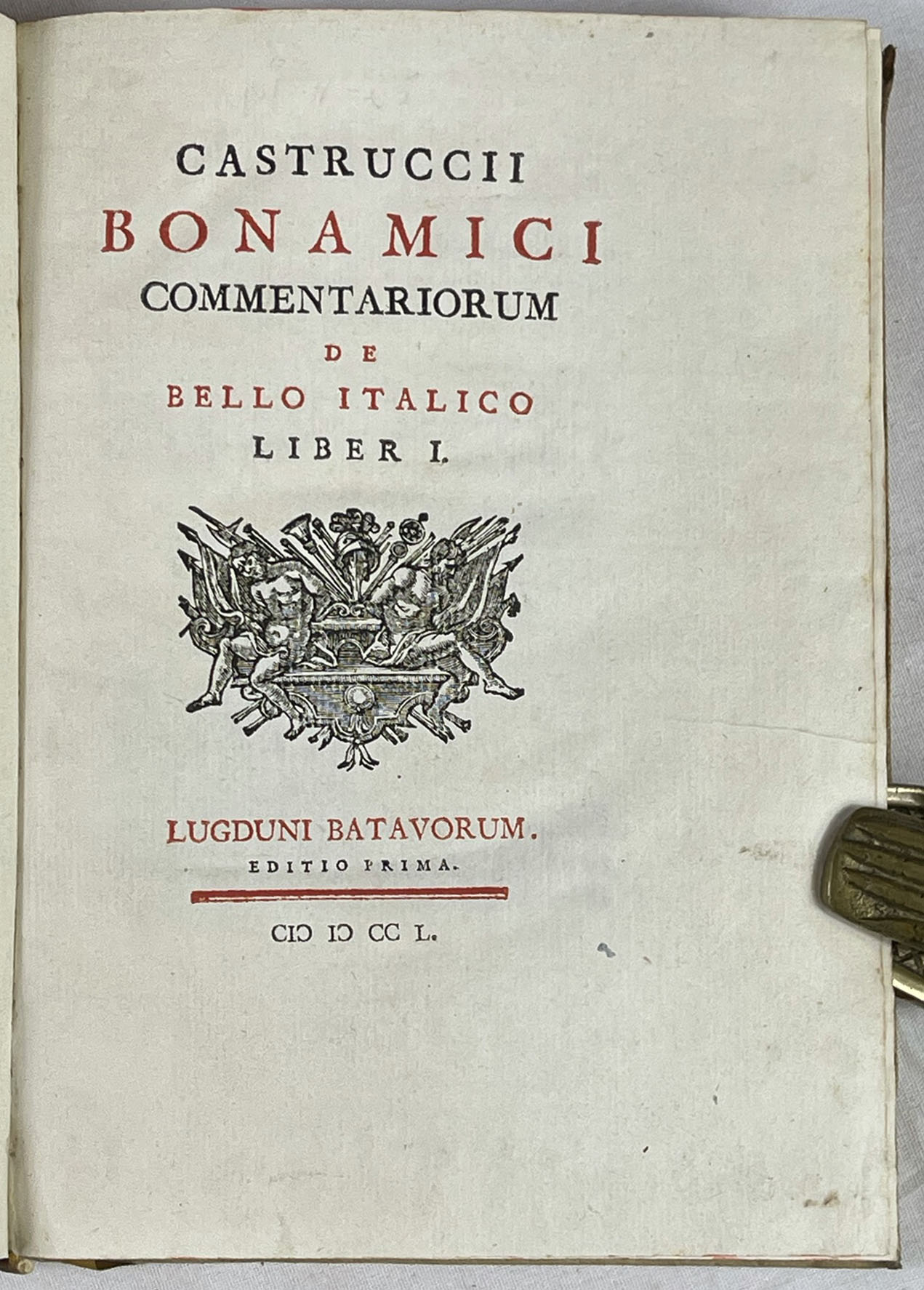 Buonamici, Castruccio. Castruccii Bonamici commentariorum De Bello Italico Liber 1 [Liber 2]. Lugduni Batavorum : [s.n.], 1750.