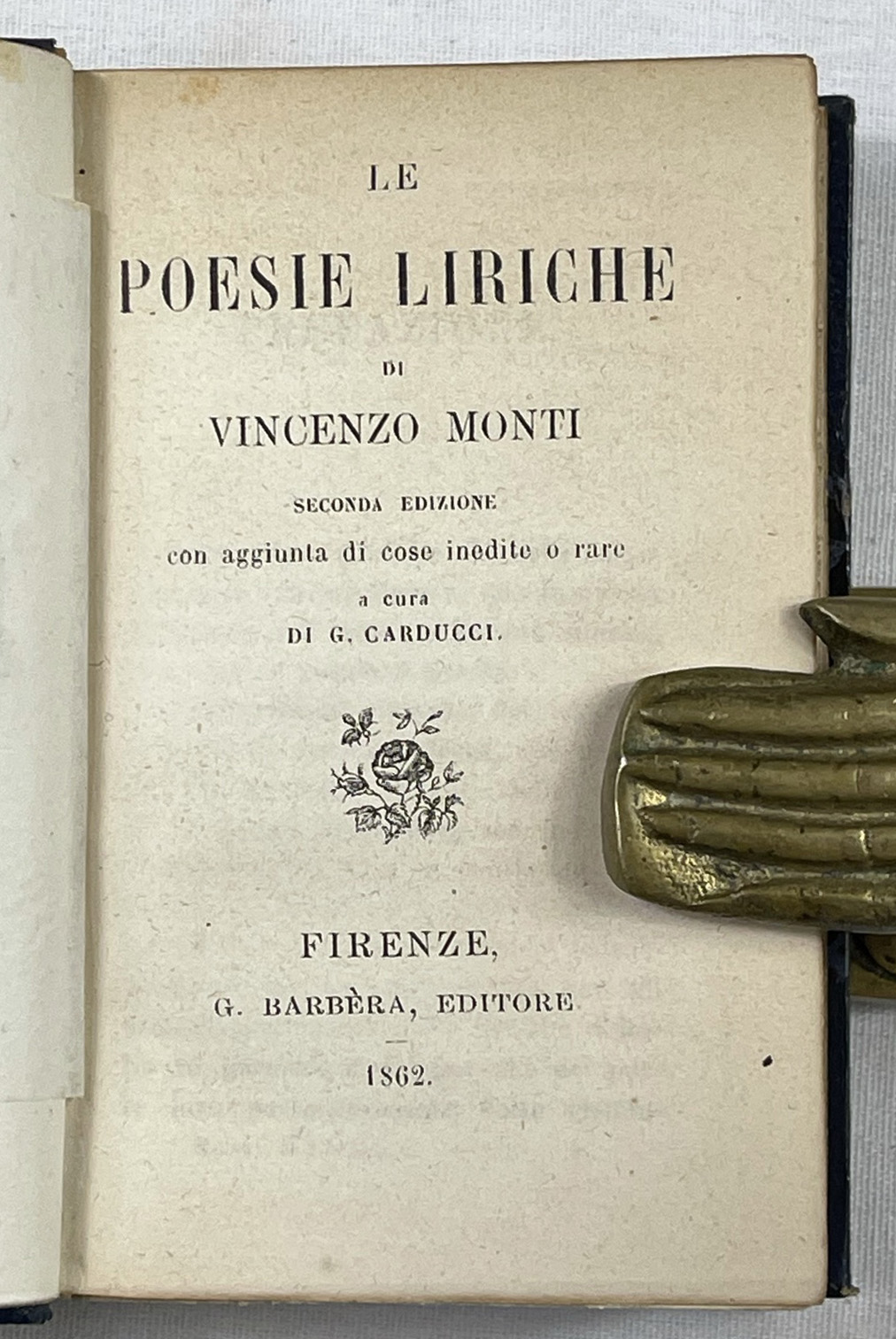 Poesie (Le) liriche di Vincenzo Monti - Firenze - ed. Barbera 1862.