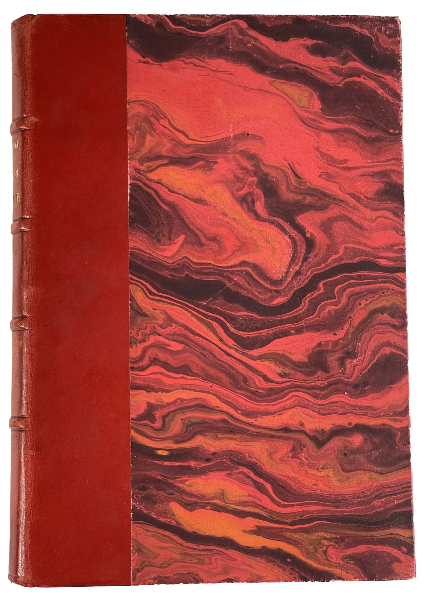 4to, half red morocco binding, on colored paper, pp. 133, Engraving by Heurdier on a drawing by Valere Bernard. Printed in 336 copies.