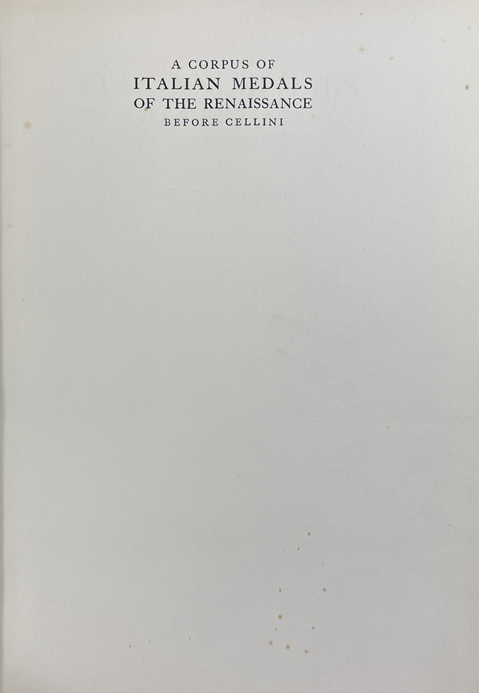 Hill, George Francis. A corpus of Italian medals of the renaissance before Cellini. British Museum,, London, 1930.
