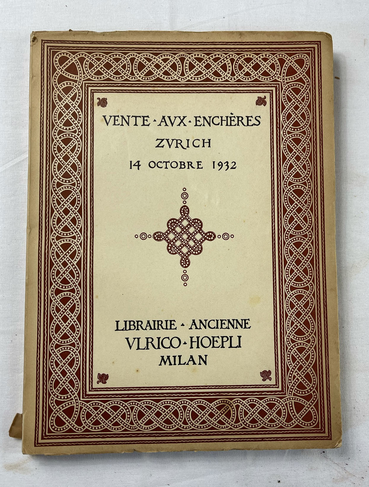 Vente aux encheres Zurich 14ottobre 1932 - Lib. Hoepli- Milano