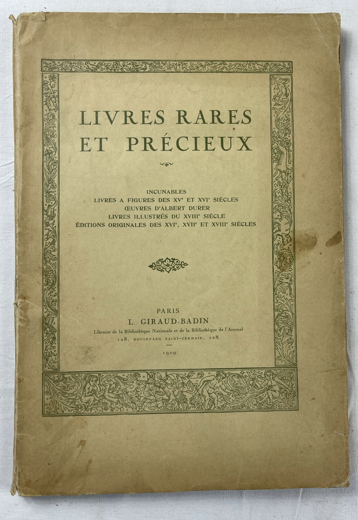 Livres rares et precieux - Lib. Giraud - Badin - Paris 1929