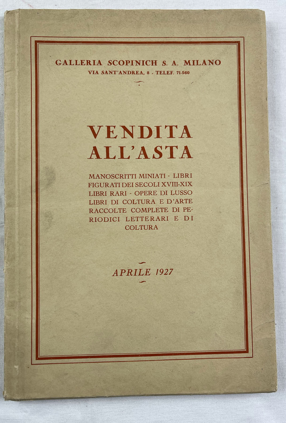 Catalogo asta manoscritti miniati ecc. Galleria Scopinich - Milano - aprile 1927