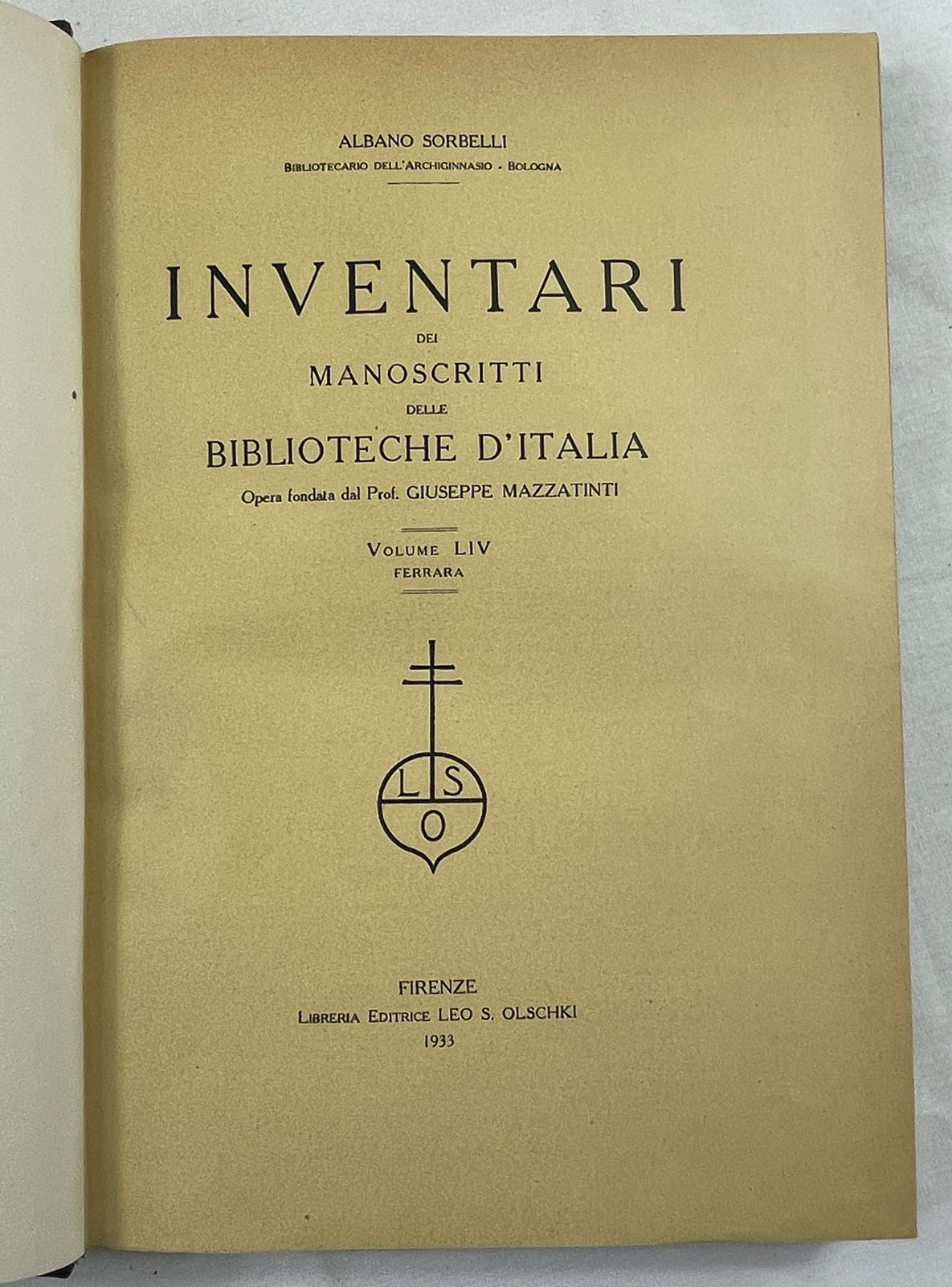 Inventari dei Manoscritti delle Biblioteche d'Italia - Inventario - Olschki - 1933