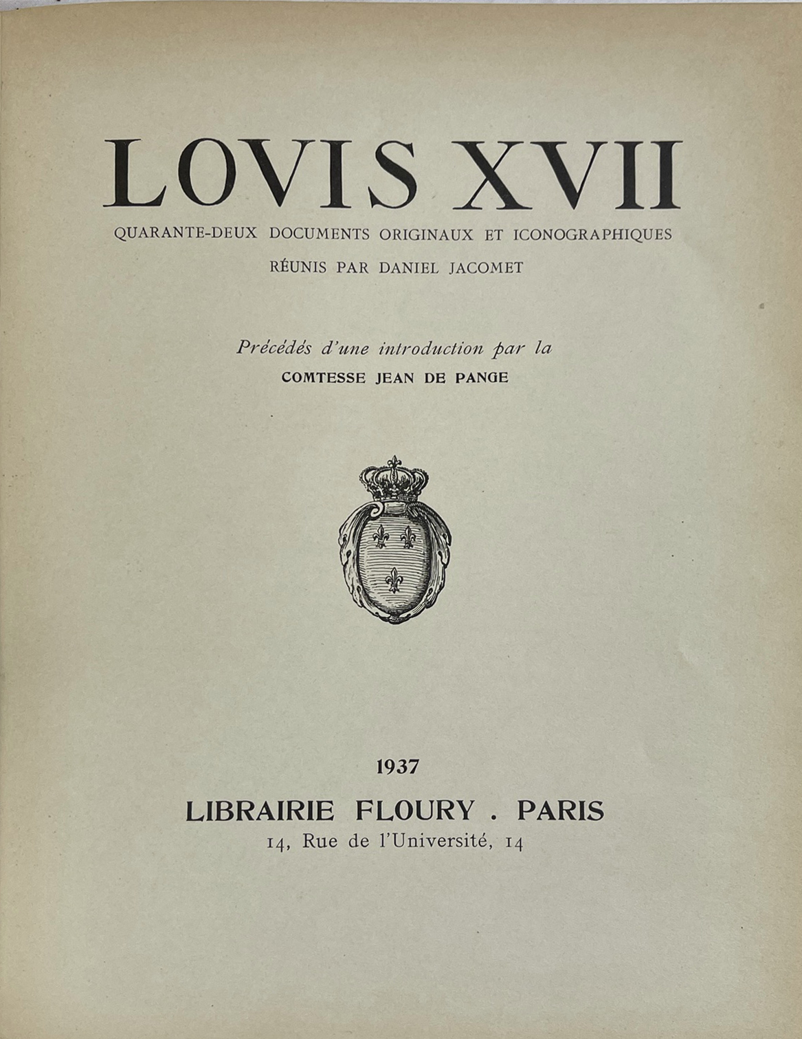 Louis XVII - Librairie Floury Prefondd - Paris 1937