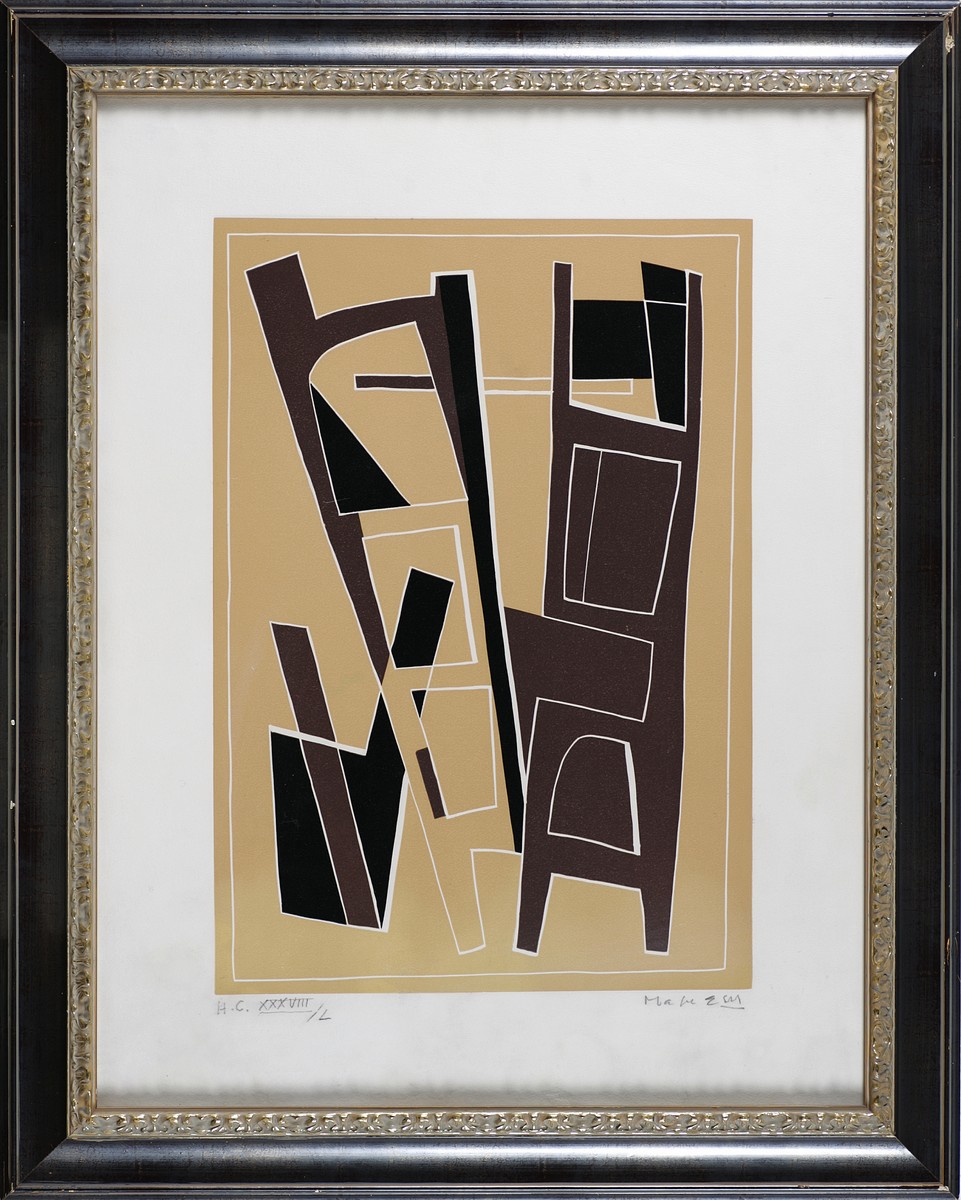 MAGNELLI ALBERTO (1888 - 1971) La magnanerie de la ferrage. 1971. Litografia. Cm 66,00 x 51,00. XXXVIII/L. Firma e tiratura in basso a matita. Dimensioni lastra: cm 49x34,5. Al retro reca il cartiglio della galleria Oprando Arte, Fino Del Monte. Cornice presente