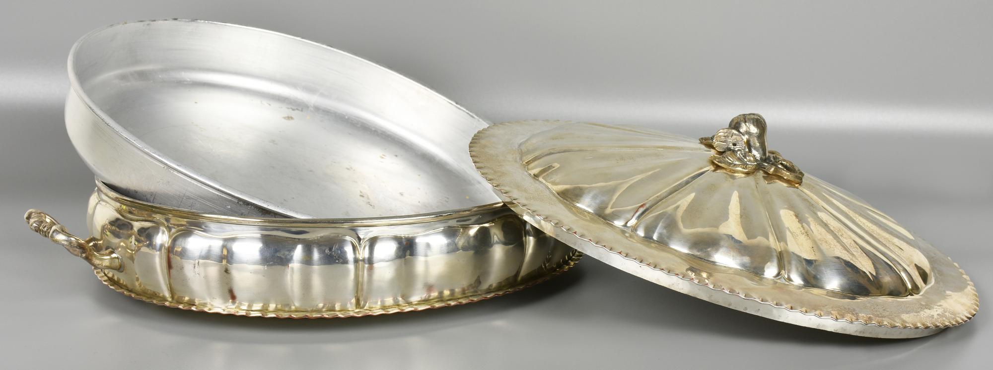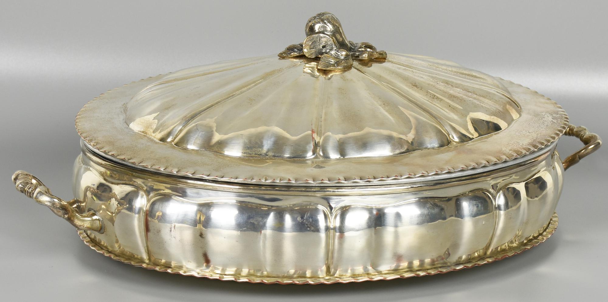 LEGUMIERA legumiera in metallo argentato con coperchio finemente sbalzata,...