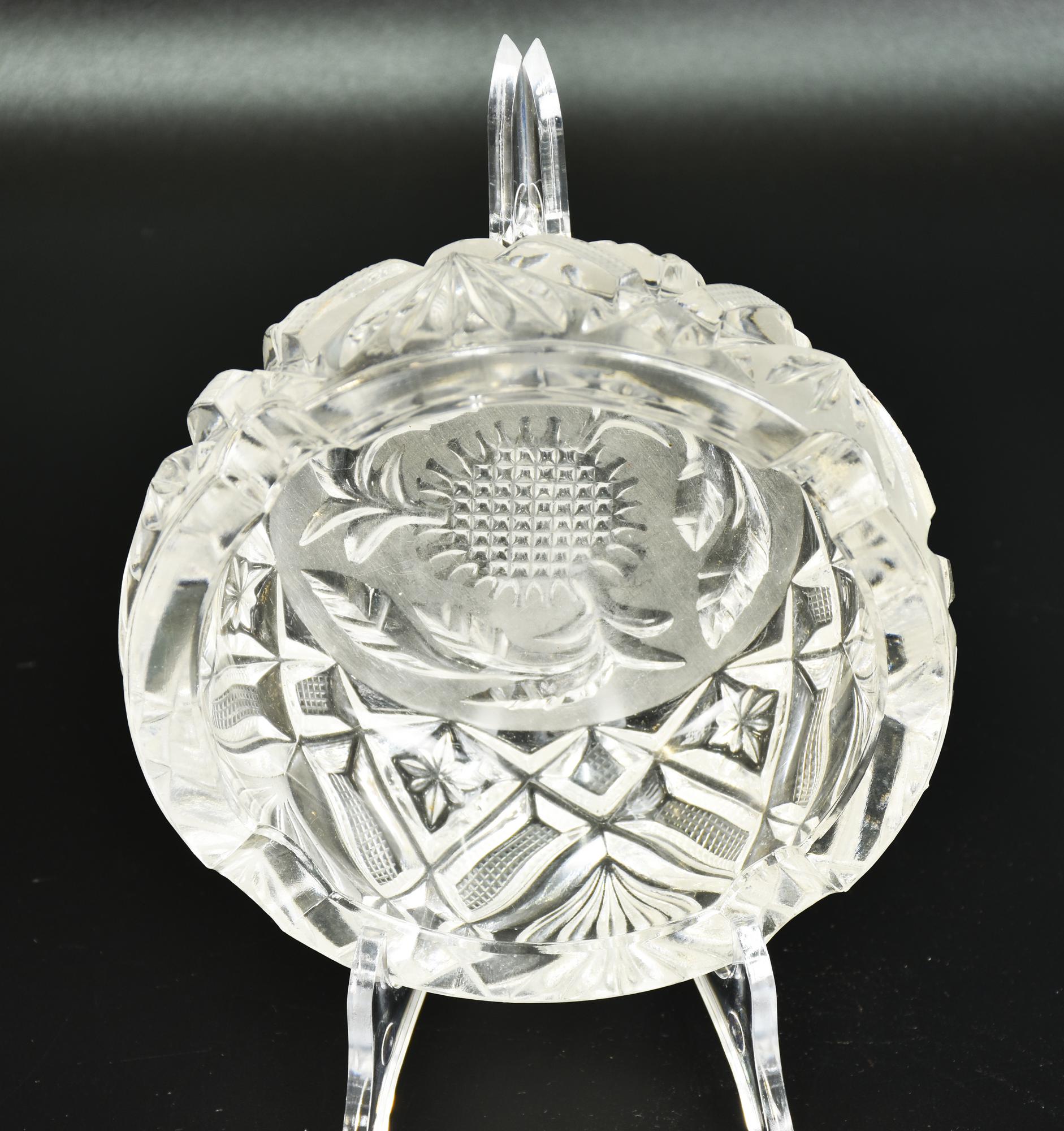 posacenere in cristallo decorato con forme geometriche e motivi floreali