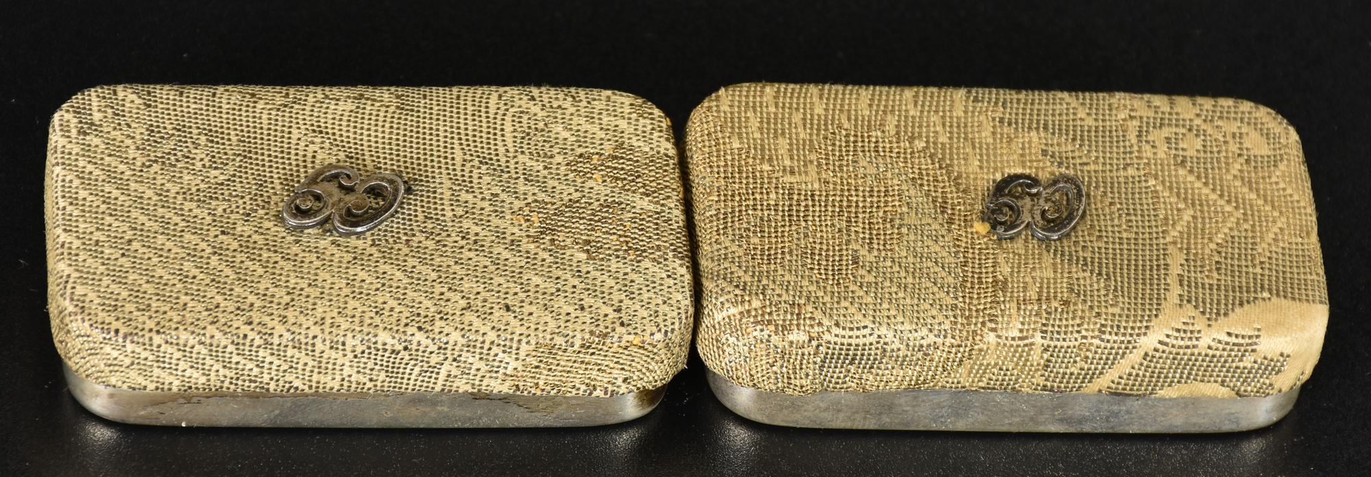 Lotto 216 | COPPIA DI SNUFF BOX in metallo argentato con coperchio rivestito di stoffa...