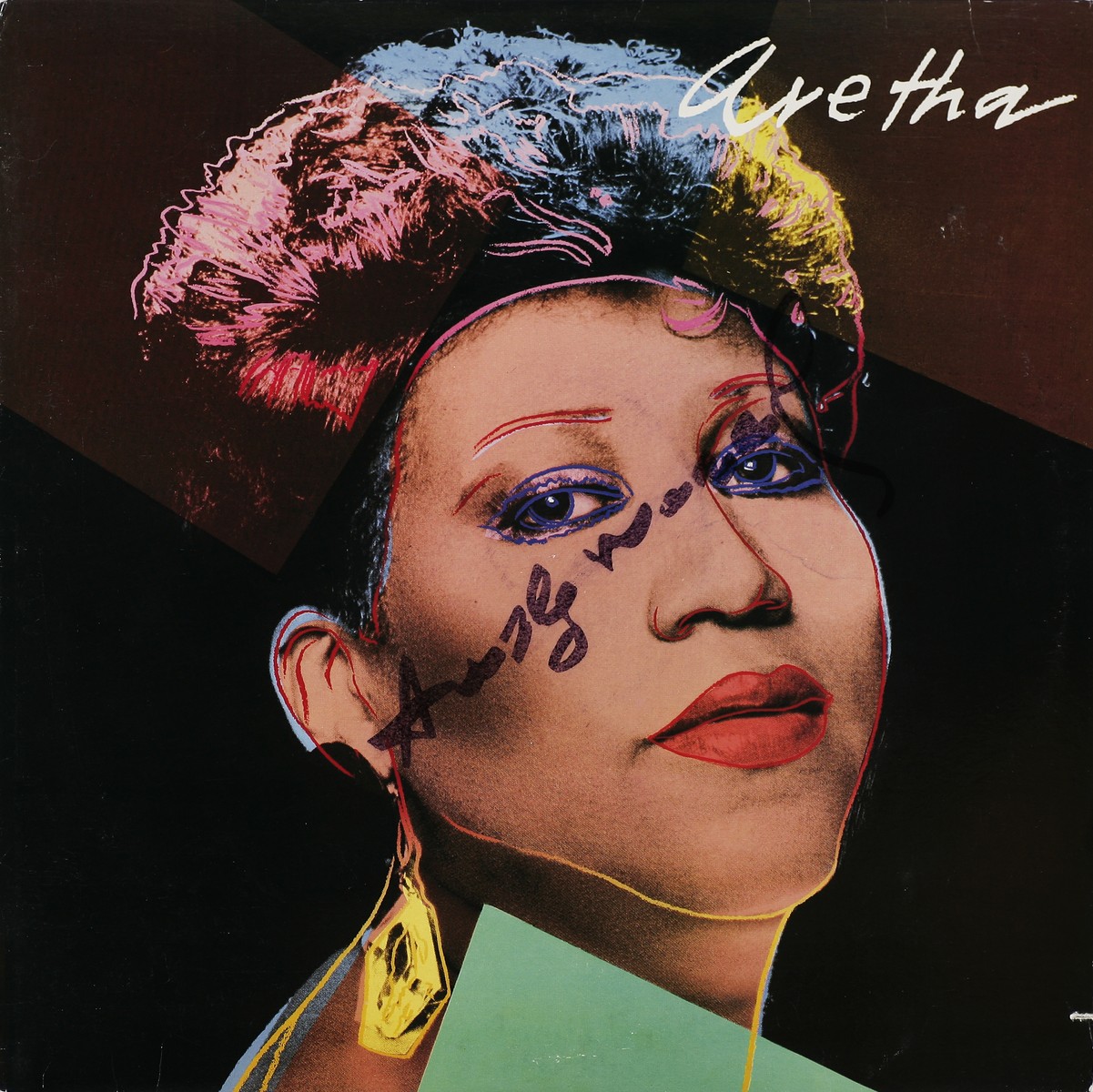 WARHOL ANDY (1928 - 1987) Aretha. 1986. Vinile. Cm 31,50 x 31,50. Disco di vinile firmato sulla copertina da Andy Warhol. Copertina e disegno al retro realizzati da Andy Wahrol.