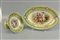 con bordure in oro zecchino e fascia verde con piccole scene di paaesaggi alpestri, al centro scene romantiche e allegoriche di gusto neoclassico.