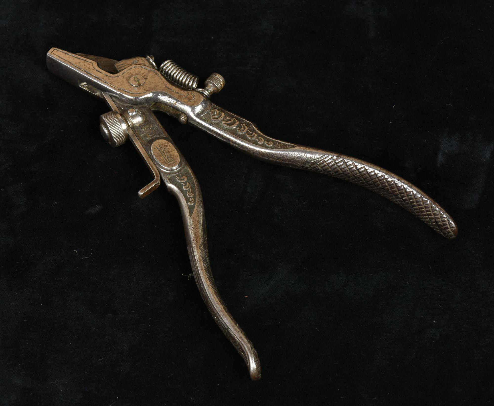 Precedente Lotto 373 Successivo Livebid - Via Tiziano Vecellio 34/D, 10126 Torino COLLEZIONISMO, DESIGN E OGGETTI CURIOSI Sessione Unica martedì 7 dicembre 2021 ore 16:30 (UTC +01:00) PINZA PER ARMI marca Blosia lunghezza cm 18 PINZA PER ARMImarca Blosialunghezza cm 18