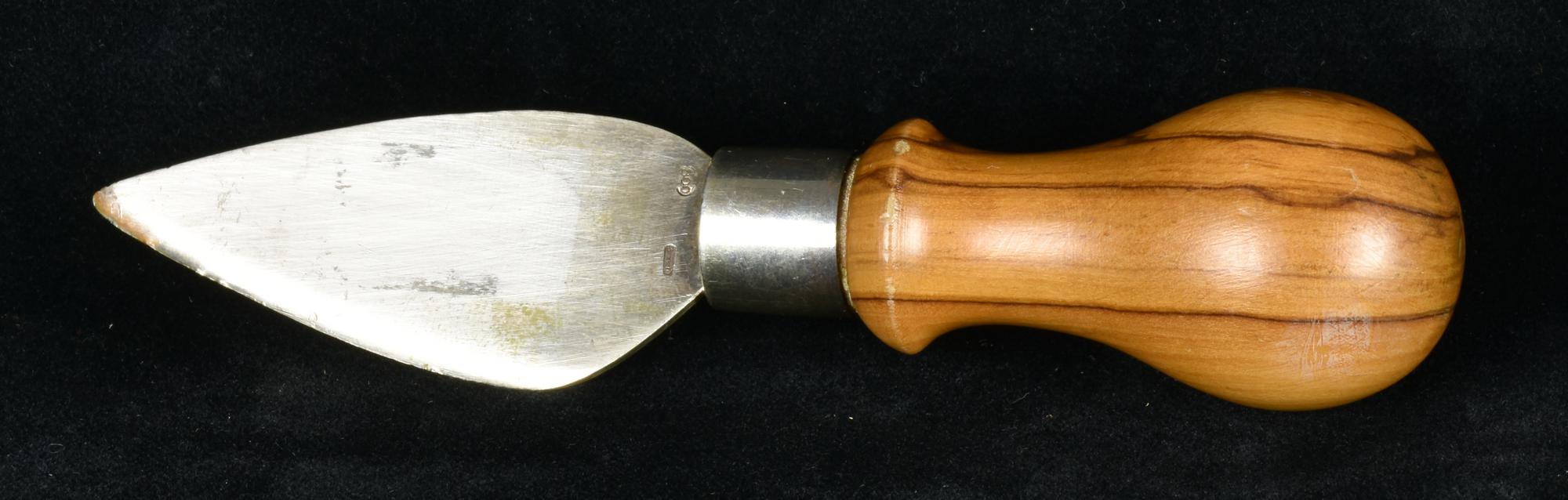 COLTELLO DA PARMIGIANO in argento 800 con manico in legno d'olivo Italia,...