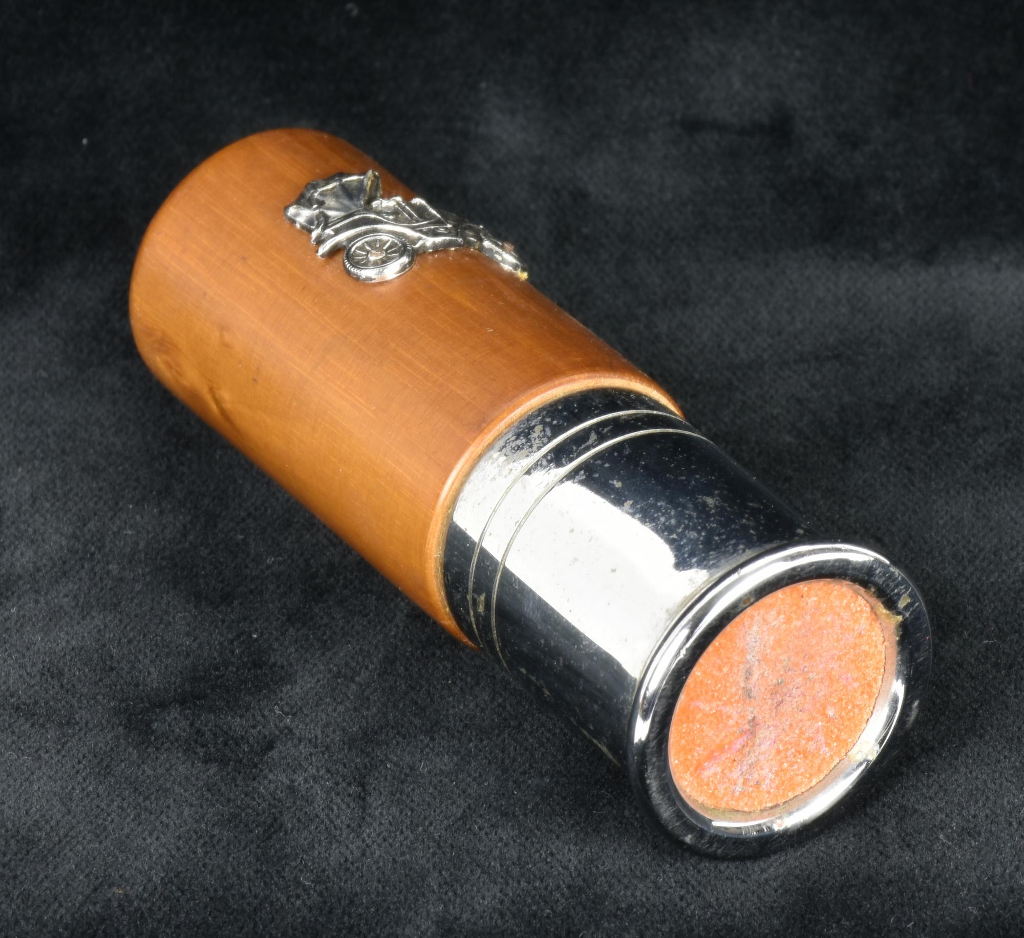 Lotto 386 | PORTAFIAMMIFERI in radica e metallo argentato Italia, 1960 ca cm 8,5