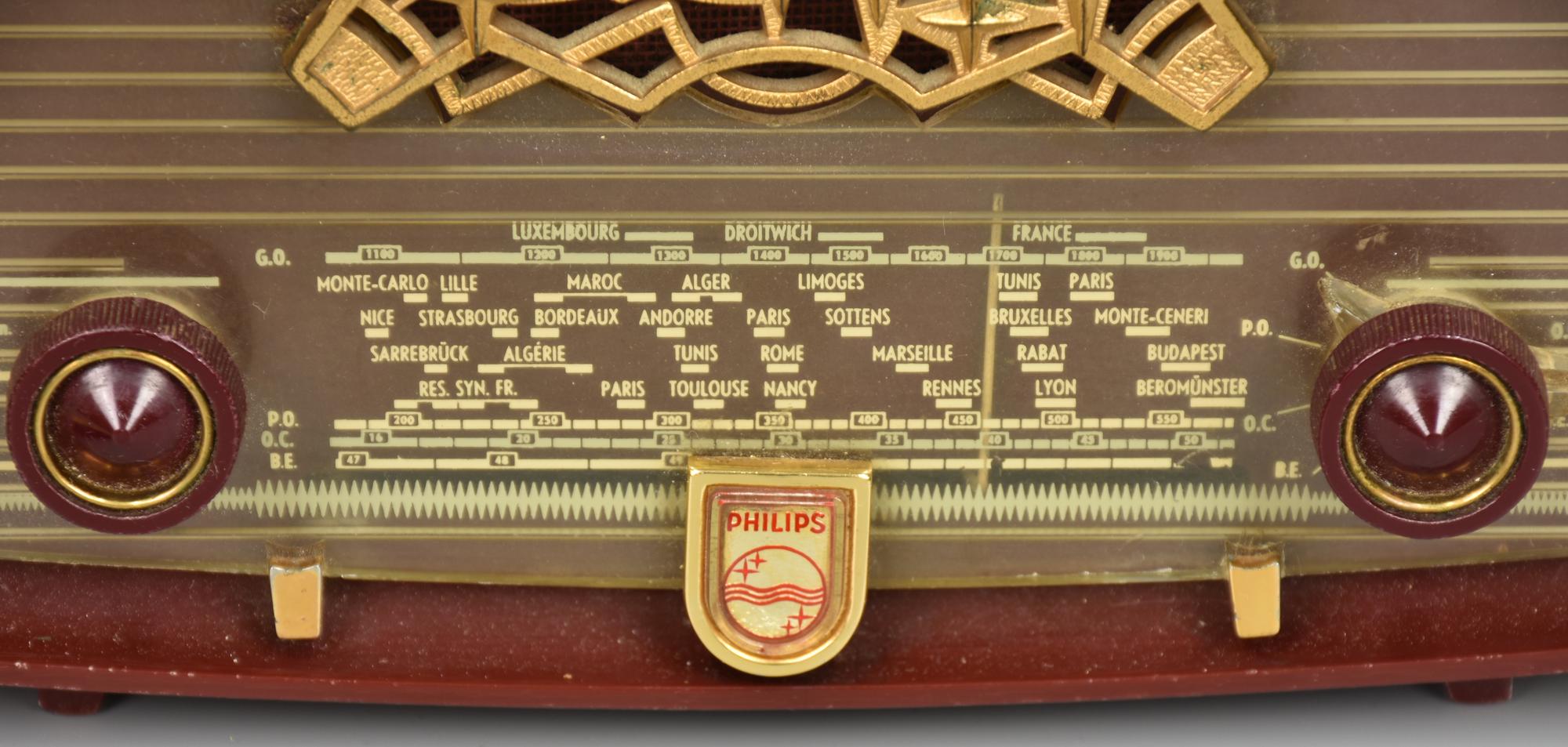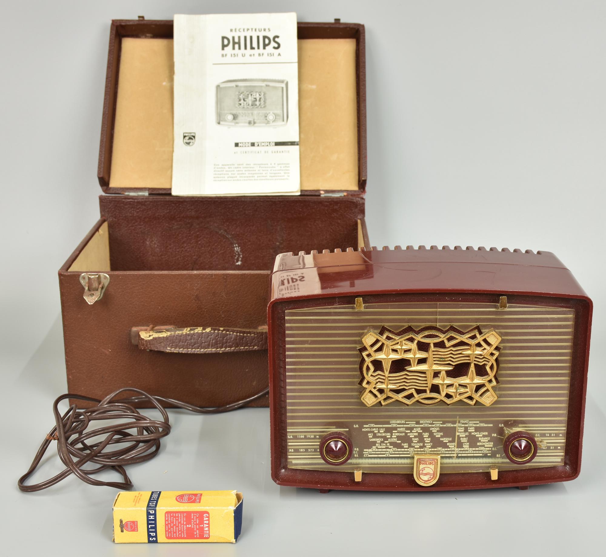 radio Philips modello BF151U a valvole, completa di valigetta da trasporto originale, libretto di istruzioni e valvola di racambio