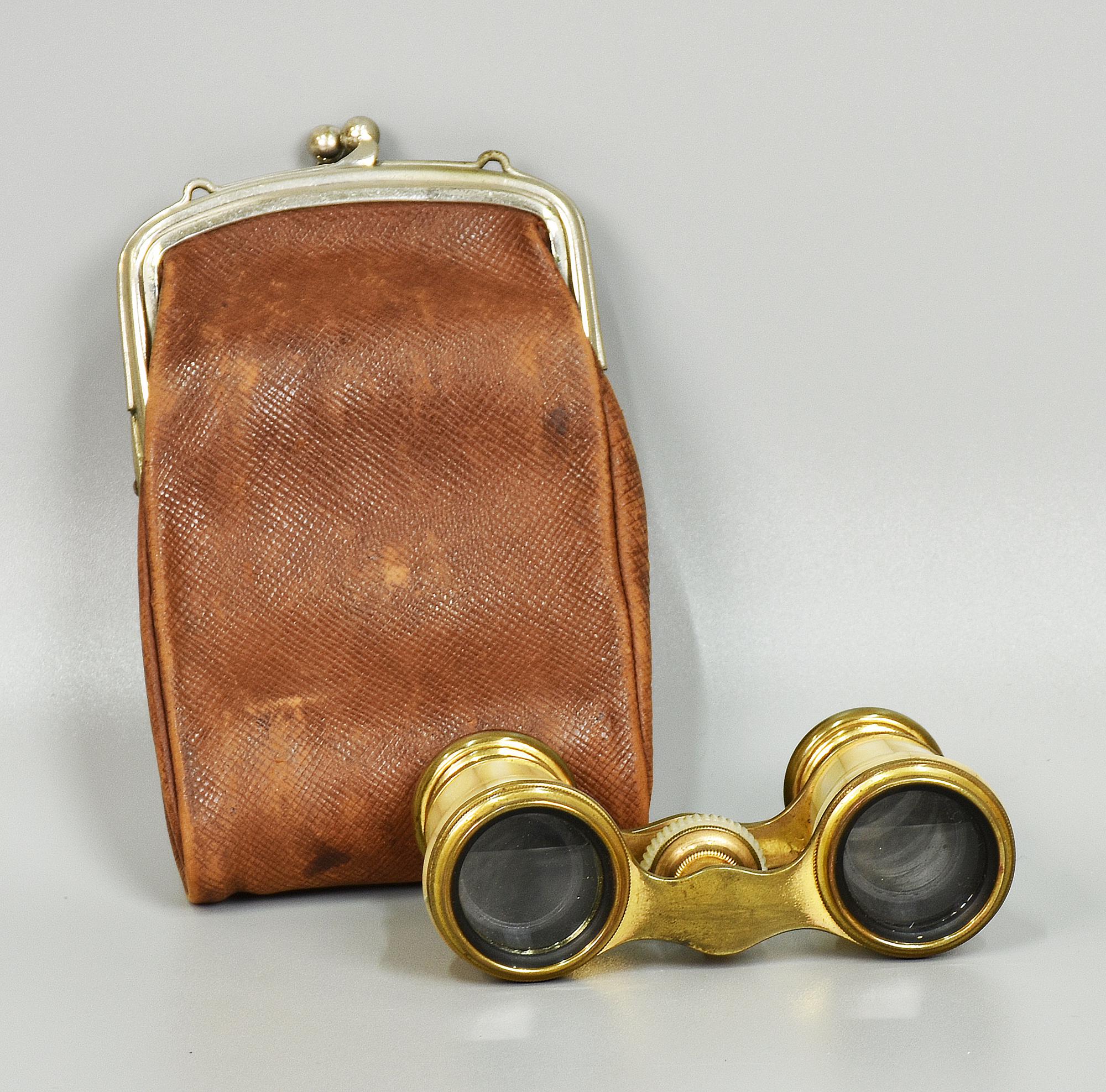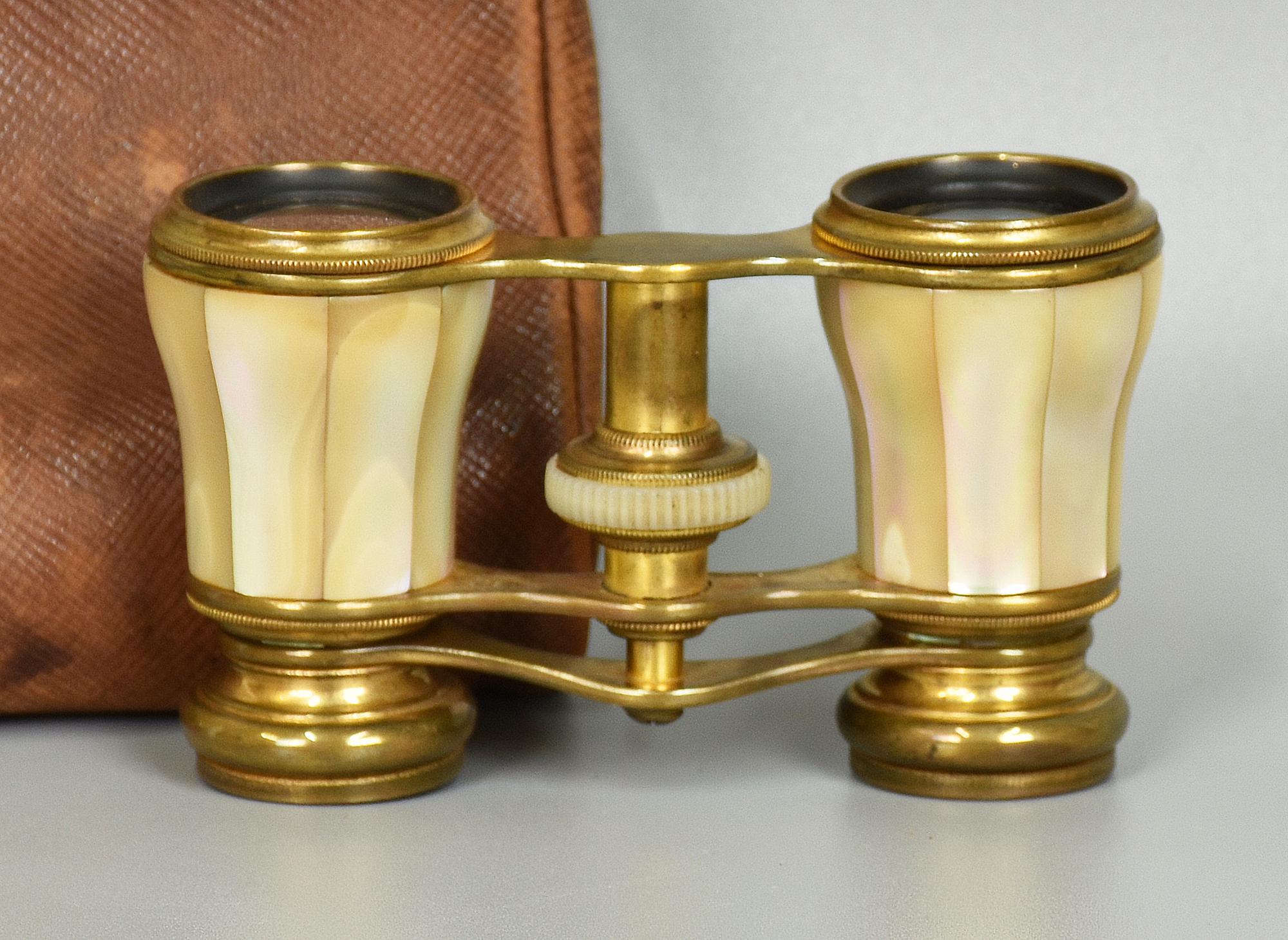 binocolo da teatro in madreperla e ottone marca Berry Torino, completo di custodia in pelle